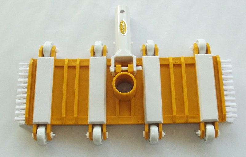 O aspirador VR350 é adequado para piscinas de concreto e de vinil. Construído em material termoplástico flexível e dotado de 8 roletes, adaptase perfeitamente à superfície do fundo da piscina, facilitando a coleta dos resíduos nele depositados. As escovas laterais permitem a limpeza adequada dos cantos do fundo, junto às paredes da piscina. Sua largura é de 35 cm. É facilmente acoplado ao cabo telescópico por meio do sistema de engate rápido nele incorporado.