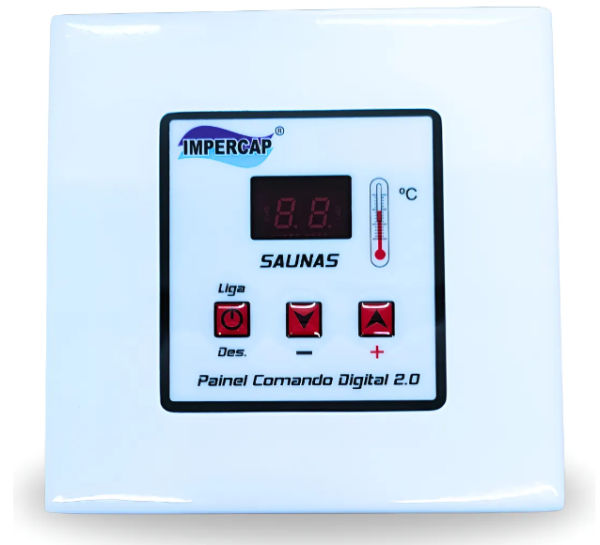 O painel digital controla toda a sauna